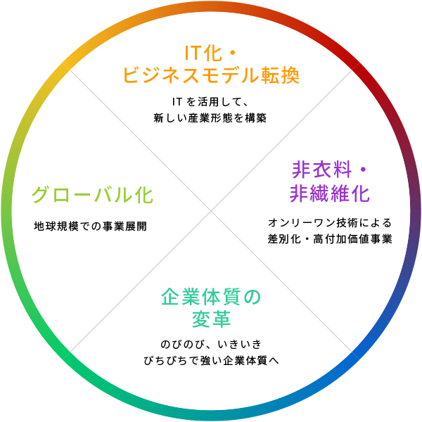 その基本となる経営戦略は、下記の4つの課題に対する取り組みです。