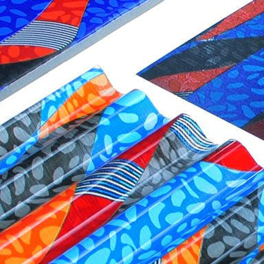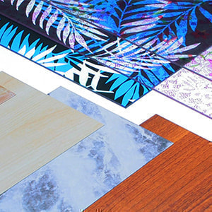 繊維素材から合皮や木材、コンクリート、セラミックス、プラスチック、塩ビ、ガラスや金属に至るまで、あらゆる素材・あらゆる用途に加飾表現が可能。