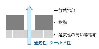 - 通気性の高い導電布を使用することにより、放熱穴部もシールドが可能