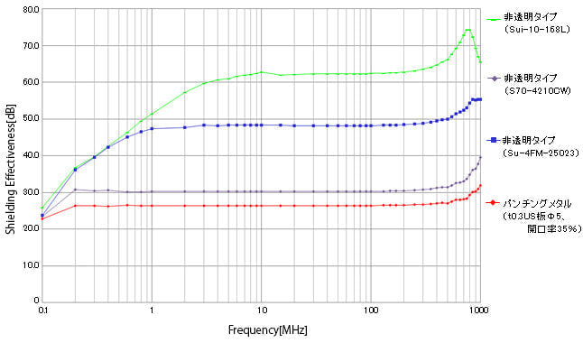 - 透過性のある導電布を使用することで、透明性とシールド性の両立が可能