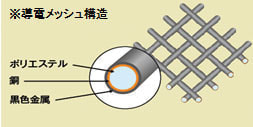 セーレンオンリーワン商品である「導電メッシュ」と他素材との複合化商品メッシュの開口や糸径、組み合わせ素材等を自由に設計する事が可能です。