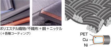 「繊維」の柔軟性と「金属」の導電性を兼ね備えた機能性コンポジット材「導電布・導電不織布」。多彩な繊維素材により、様々なバリエーション