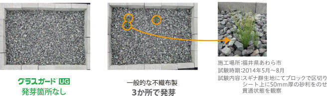 グラスガードUGは緻密な織物なので繊維が均一で、芽の貫通をムラなくブロックします。