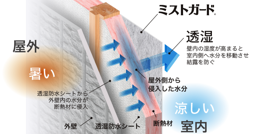 可変透湿で夏の結露を防ぐ"ミストガード®︎"