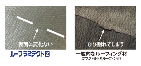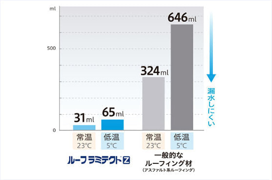 ルーフラミテクトZは、低温時、高温時共に高い止水性能を発揮する事ができ、季節を問わず安心してお使いいただけます。