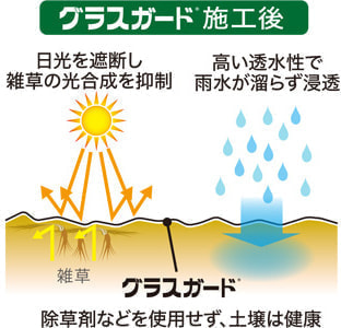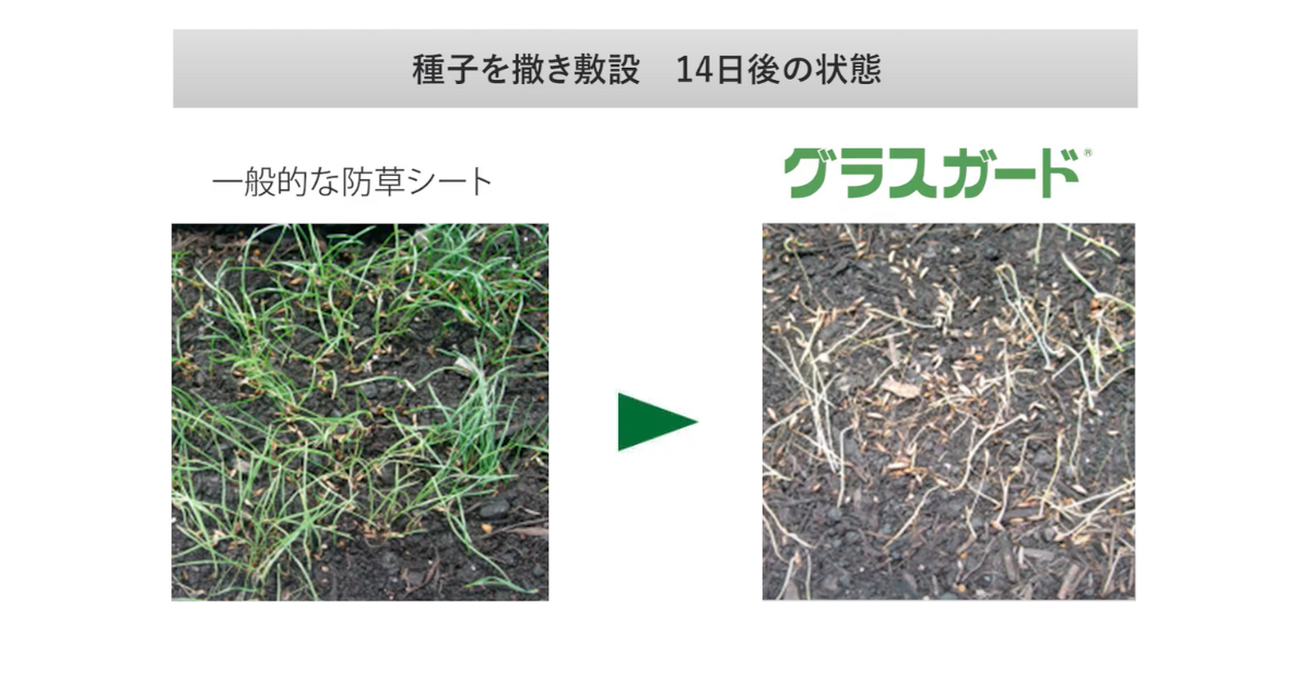 雑草の芽の貫通を妨げ、光を通さず成長を止める