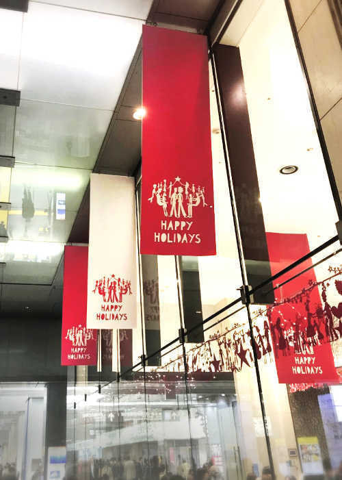 塩ビ系の素材と比較すると、繊維製品は嫌な臭いが無く、安心して人の目線に近い場所への掲出が可能です。更に環境に優しいノンハロゲン防炎加工を施すことが出来ます。