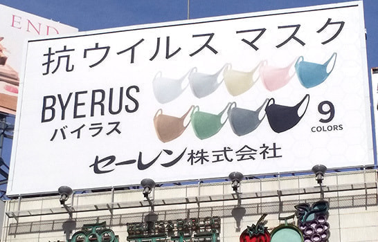 高い色再現性と製作サイズ制約なしの特性を活かしたビッグフラッグや屋外サイン広告。