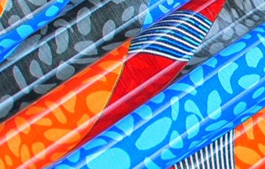 プラスチックへの加飾例。曲面にも色柄の付加が可能。