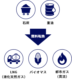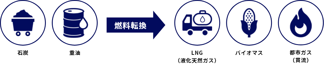 石炭や重油からLNG(液化天然ガス)、バイオマスへの燃料転換、また製造工程合理化やロス・ムダの削減、省エネ設備の導入などにより、セーレングループ全体でCO2 排出量の削減に取り組んでいます。